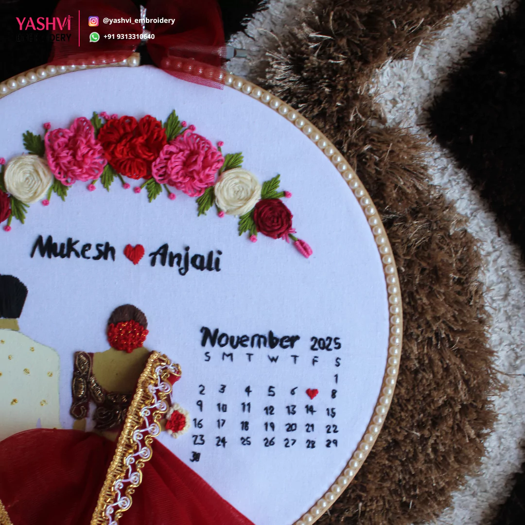 Apne Wedding aur Anniversary ko banaiye aur bhi special hamare Personalized Embroidery Hoops ke saath. Ye hoops hand-stitched with care hote hain aur aapke love story ko ek unique wall decor banakar hamesha yaadgar kar dete hain.